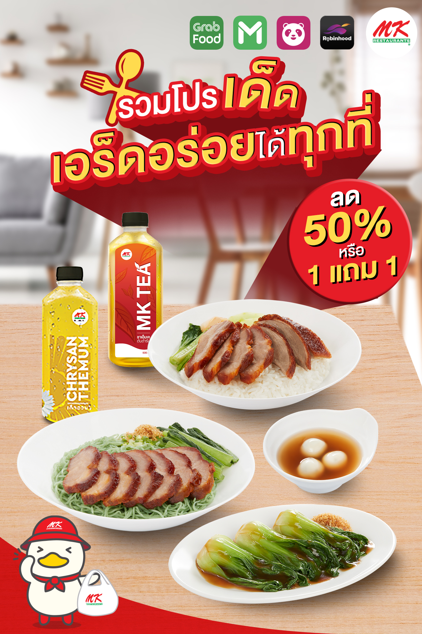 รวมโปรโมชั่นเด็ดๆ โดนๆ ให้คุณสามารถอร่อยได้ทุกที่ไปกับ MK ไม่ว่าจะสั่งผ่าน Lineman, FoodPanda, หรือ Robinhood ก็อิ่มคุ้มกันแบบจุกๆ . เงื่อนไข : 1. โปรโมช...