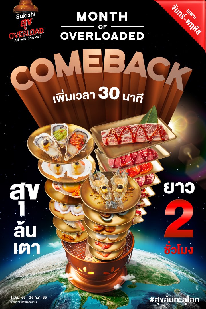 ปรากฎการณ์สุขทะลุโลกกลับมาแล้ว #ขยายเวลา30นาที ให้สุขล้นเตายาว 2 ชั่วโมงเต็มแบบไม่อั้น! ที่ “Sukishi สุข Overload” ทุกราคา ตลอดวันจันทร์ - พฤหัสบดี มา #อร่อย...
